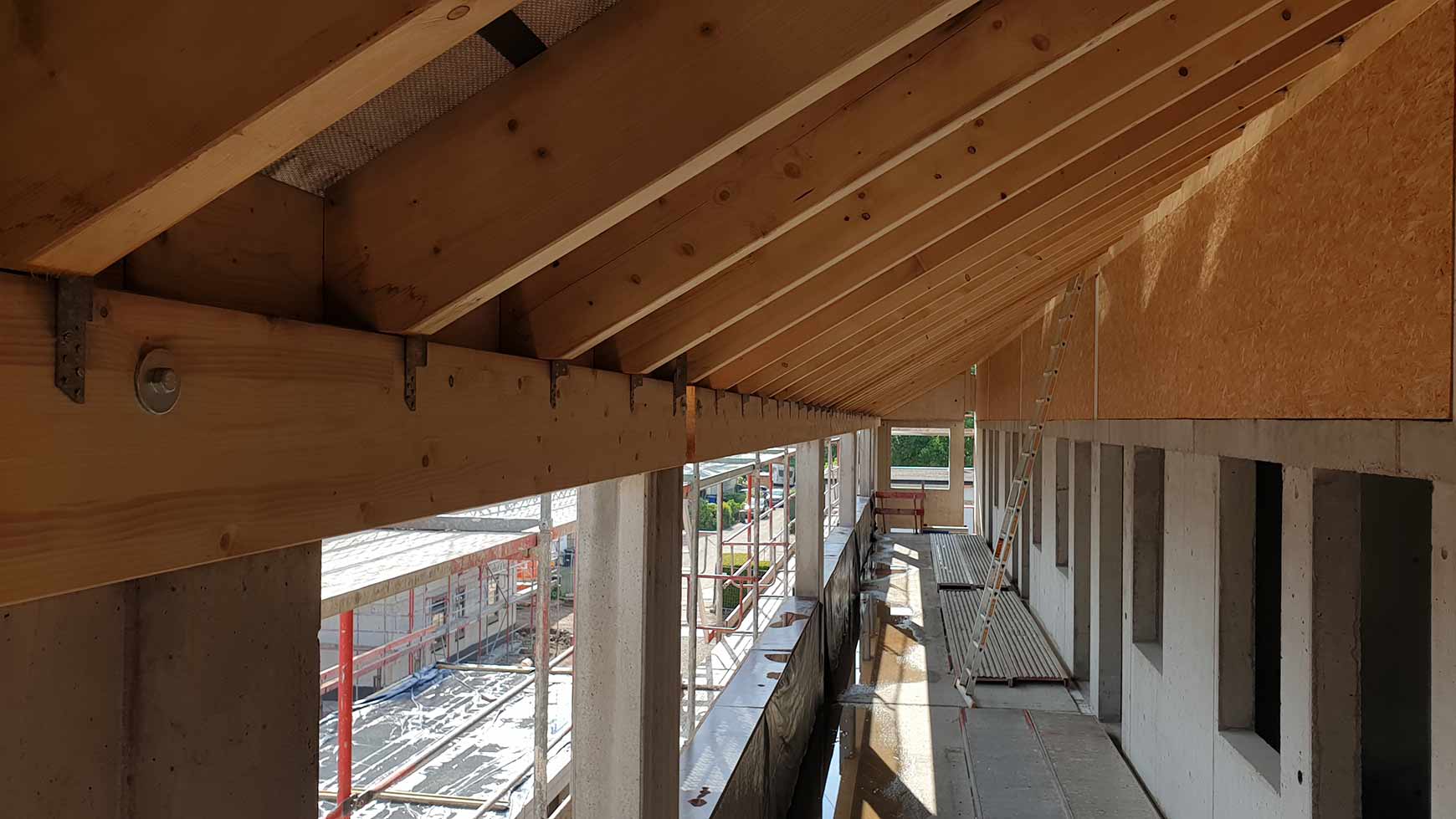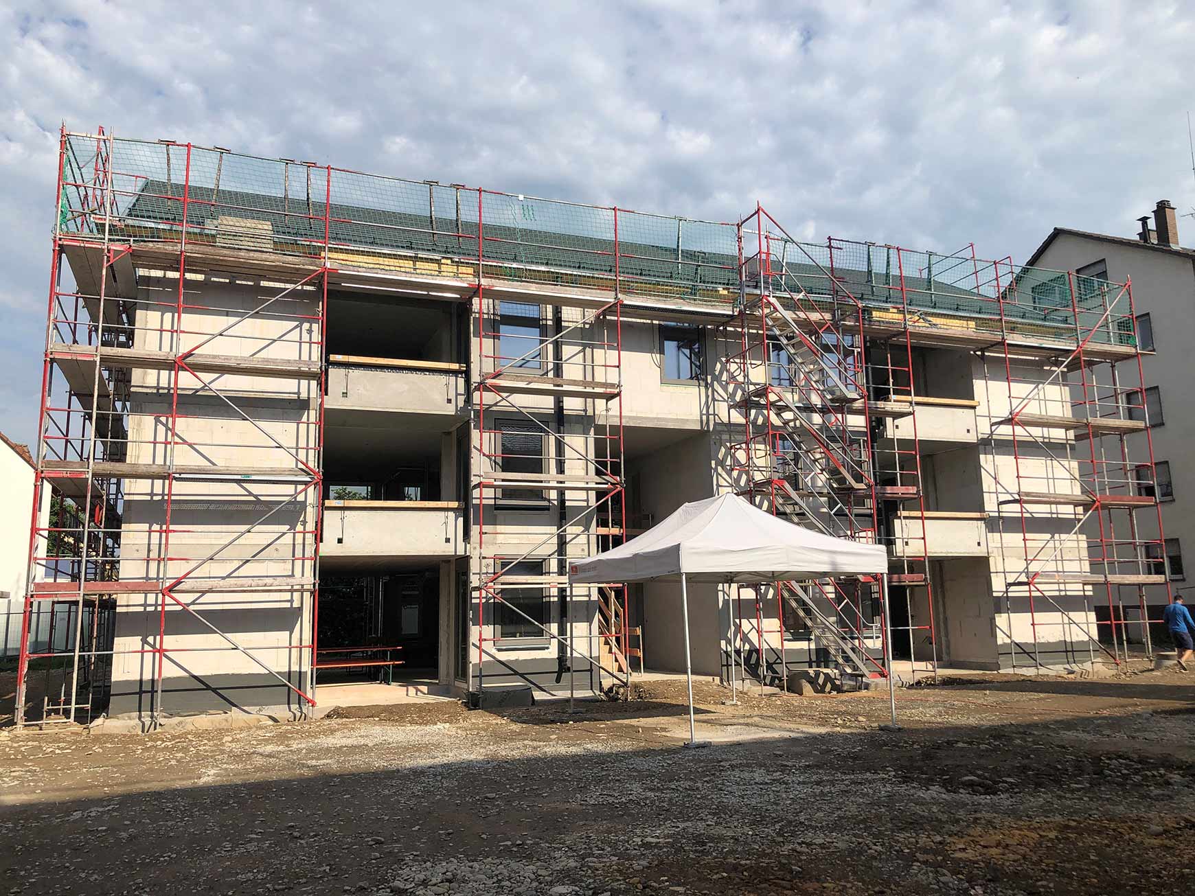 | Tragwerk: | Stahlbetonkonstruktion, Außenwände mit Wärmedämmverbundsystem, Balkone, Laubengänge aus FT |